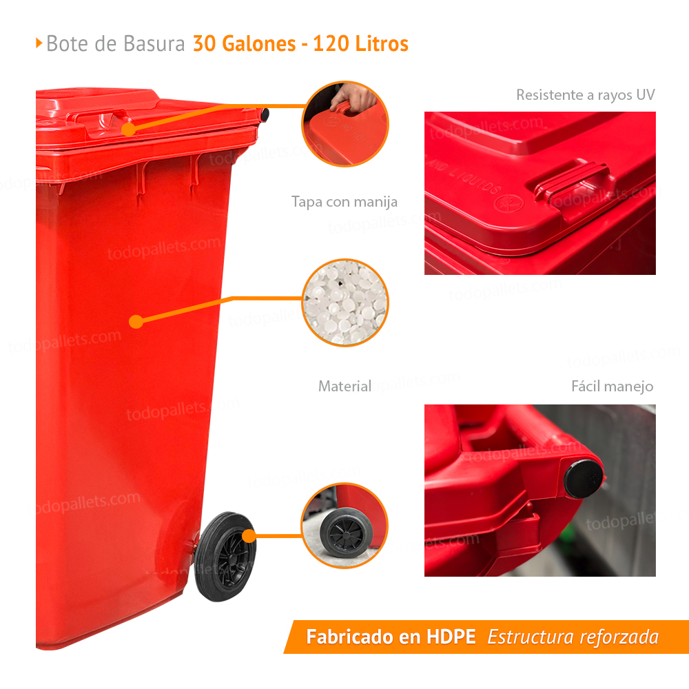 Bote de Basura 120 Lts. / 30 Galones color Rojo
