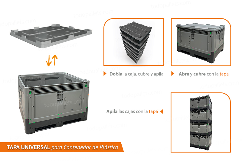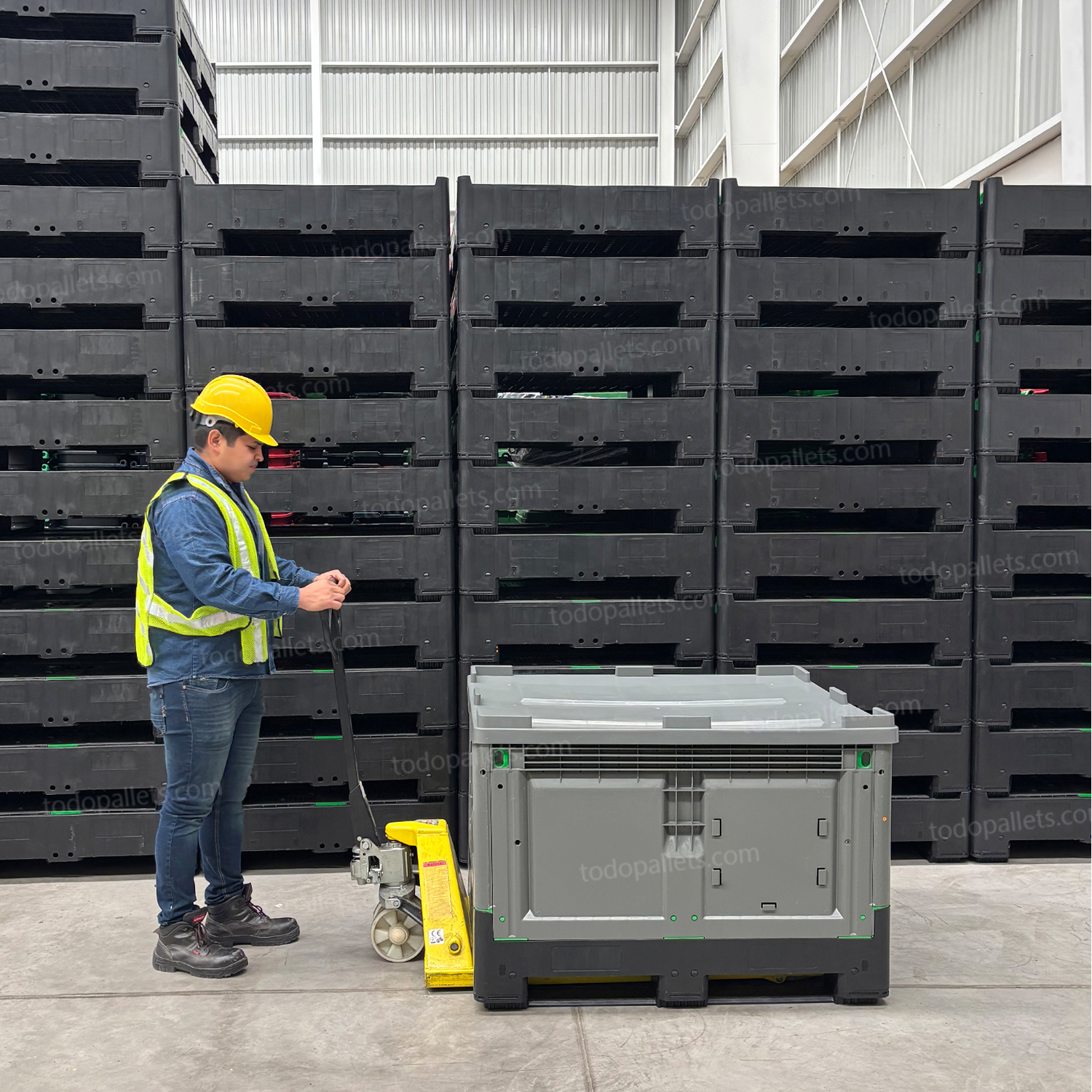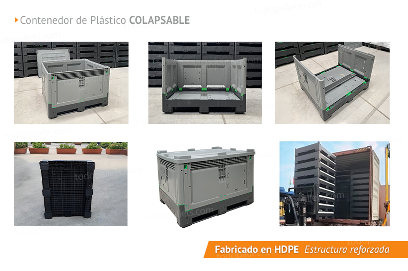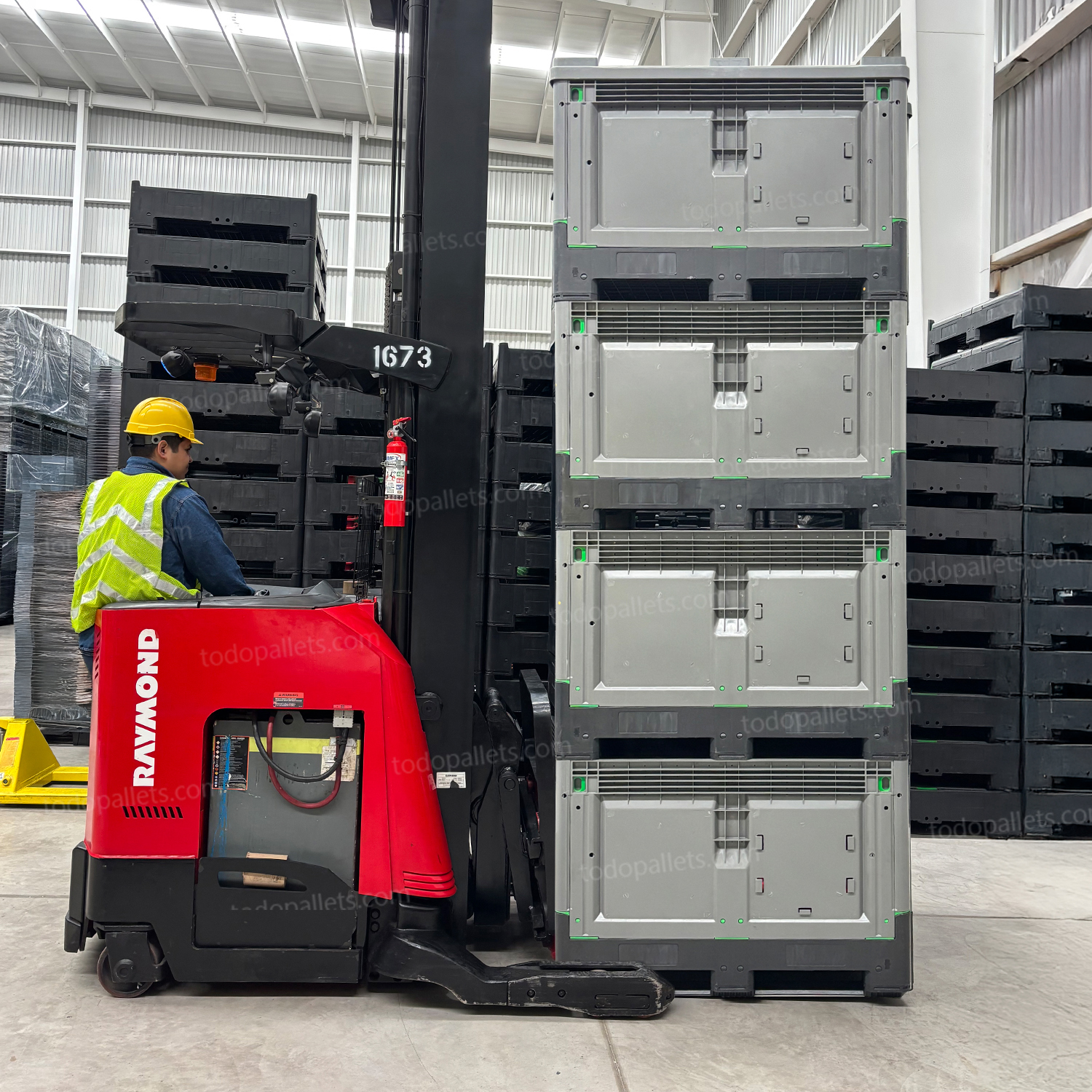 Su diseño colapsable permite reducir el espacio de almacenamiento en un 80%, haciéndolo ideal para diversas industrias y condiciones logísticas.
