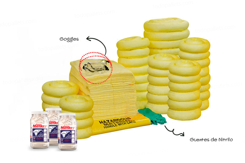 Con todos los materiales necesarios al alcance, este kit permite actuar rápidamente y en cumplimiento con las regulaciones actuales, asegurando la protección y el bienestar en el lugar de trabajo.