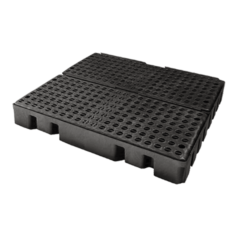Plataforma Antiderrames para 2 Tambos Industriales resistente a hidrocarburos, aceites y a la corrosión. Fabricada con Polietileno de alta calidad. Aprobada por Normas EPA, SPCC y NPDES. Incluye rejilla removible HDPE para facilitar la limpieza y acceso al interior de la plataforma. Tiene entrada para montacargas y diseño ergonómico. Accesorio complementario Rampa PolyRamp Chica