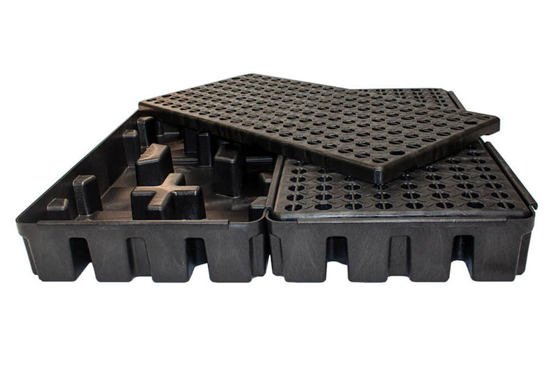 La plataforma antiderrames para 2 tambos es ideal en múltiples aplicaciones industriales. Contiene derrames de hidrocarburos y aceites, diseño de bajo perfil que facilita su uso. Cuenta con conectores en U en dos de sus bordes, lo que permite generar múltiples configuraciones.