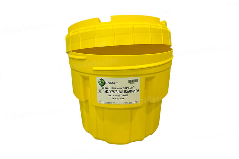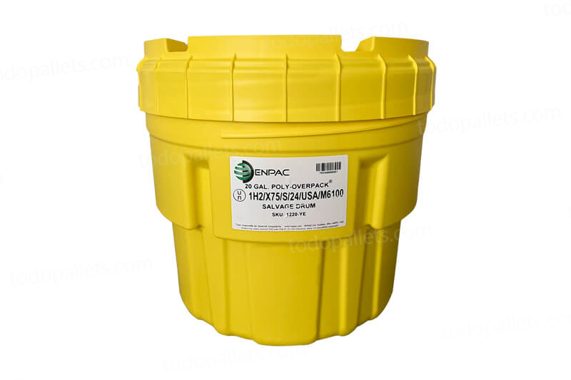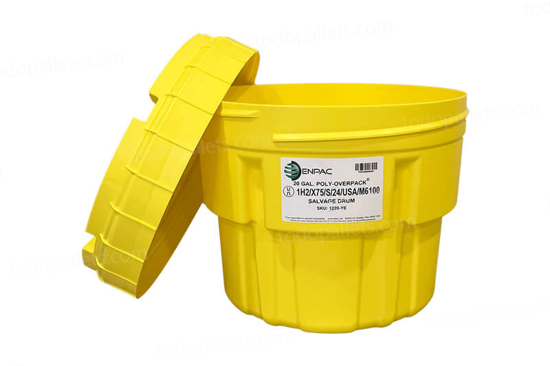 El tambor de salvamento es apilable y fácil de usar con su tapa enroscable. Poly-Overpack Salvage Drum de 20 galones, diseño encajable, con tapa roscada de media vuelta. Perfecto para transportar botellas, latas y contenedores de 5 gal que contengan mercancías peligrosas con riesgo de derrame. Ideal para ser un contenedor para posibles derrames con aprobaciones UN y DOT para operaciones simples.
