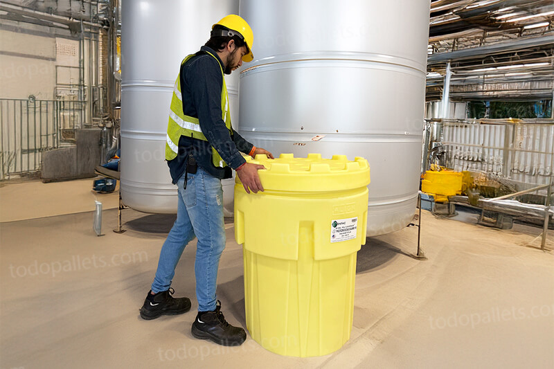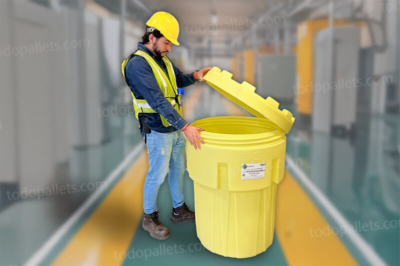 Fabricado en Polietileno roto moldeado. Durable y resistente a la corrosión. Contenedor de acceso rápido, tapa superior deslizante, mejora la seguridad en el lugar de trabajo.