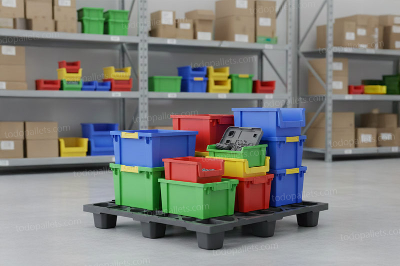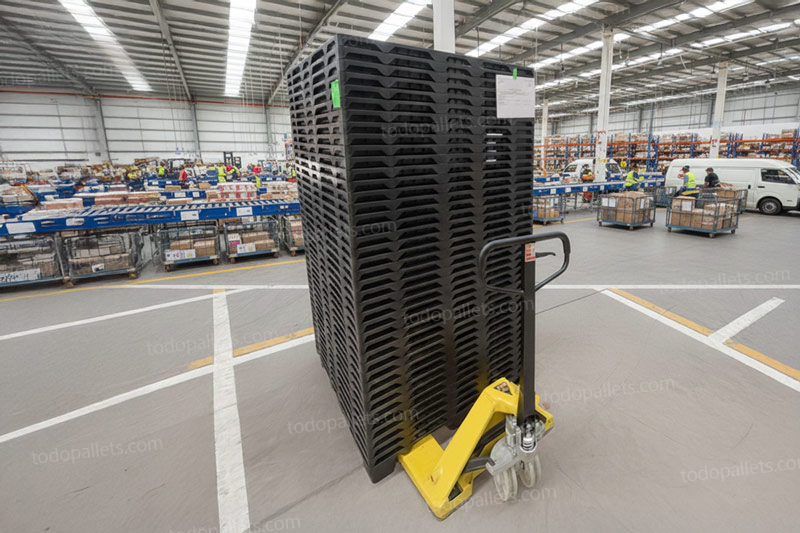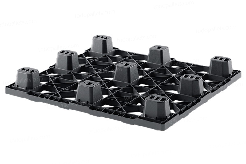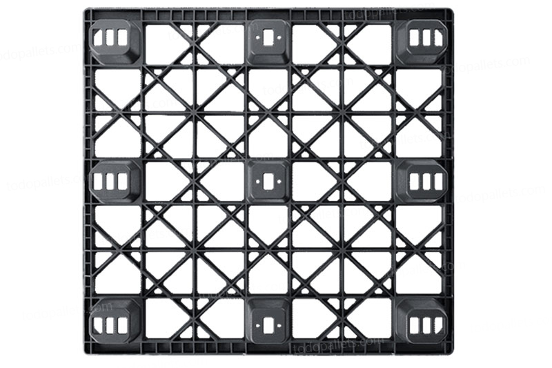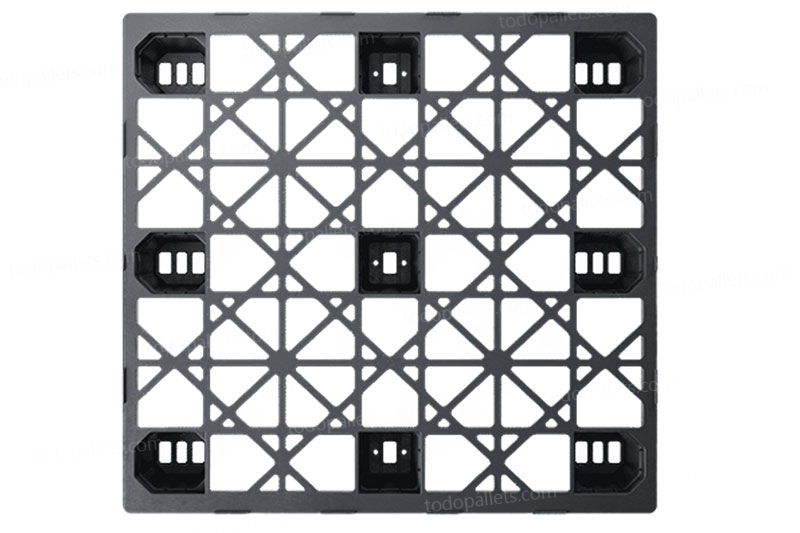 Tarima de plastico medida automotriz diseñada para uso interno y envíos. Compatible con cajas de plástico y cartón, medida automotriz 48 x45. Tarima plástica anidable, reduce costos en envíos y optimiza el espacio de almacenamiento, inigualable capacidad de carga de 4 Toneladas. Aprobada por ISPM15, ISO22000.